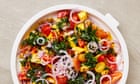 There is a lonely tomato plant in a corner of the Ottolenghi test kitchen. It has grown out of a single seed from a single squashed datterini tomato that we happened to have lying around. To be honest, none of us thought it would come to much. But it did! It recently produced a bounty of five tiny tomatoes, which we cut in half, sprinkled with salt and a drizzle of oil, and enjoyed simply. The delight in a single tomato can be just as rewarding as a salad featuring the season’s plenty. It is for you to choose.
