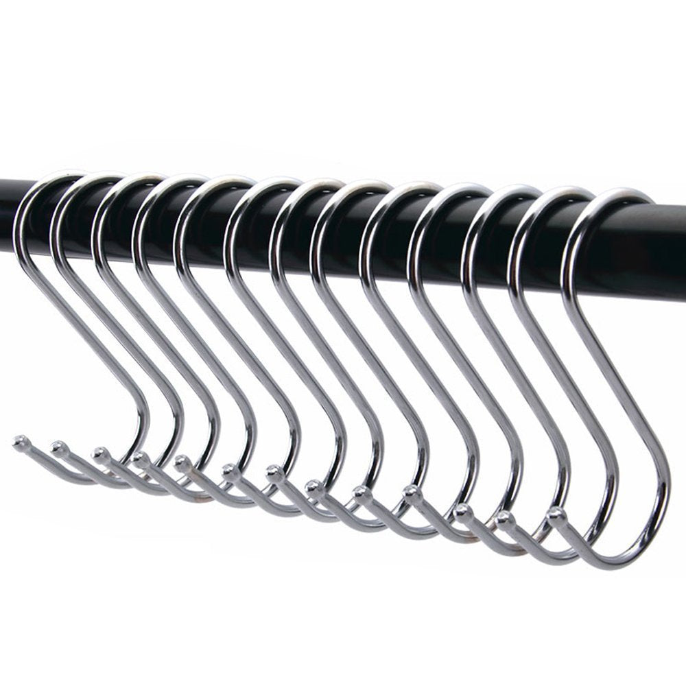 Flammi 10 Pack Stainless Steel Round S Shaped Hooks 3.5" Long Hanging Hooks for Home Kitchen Office