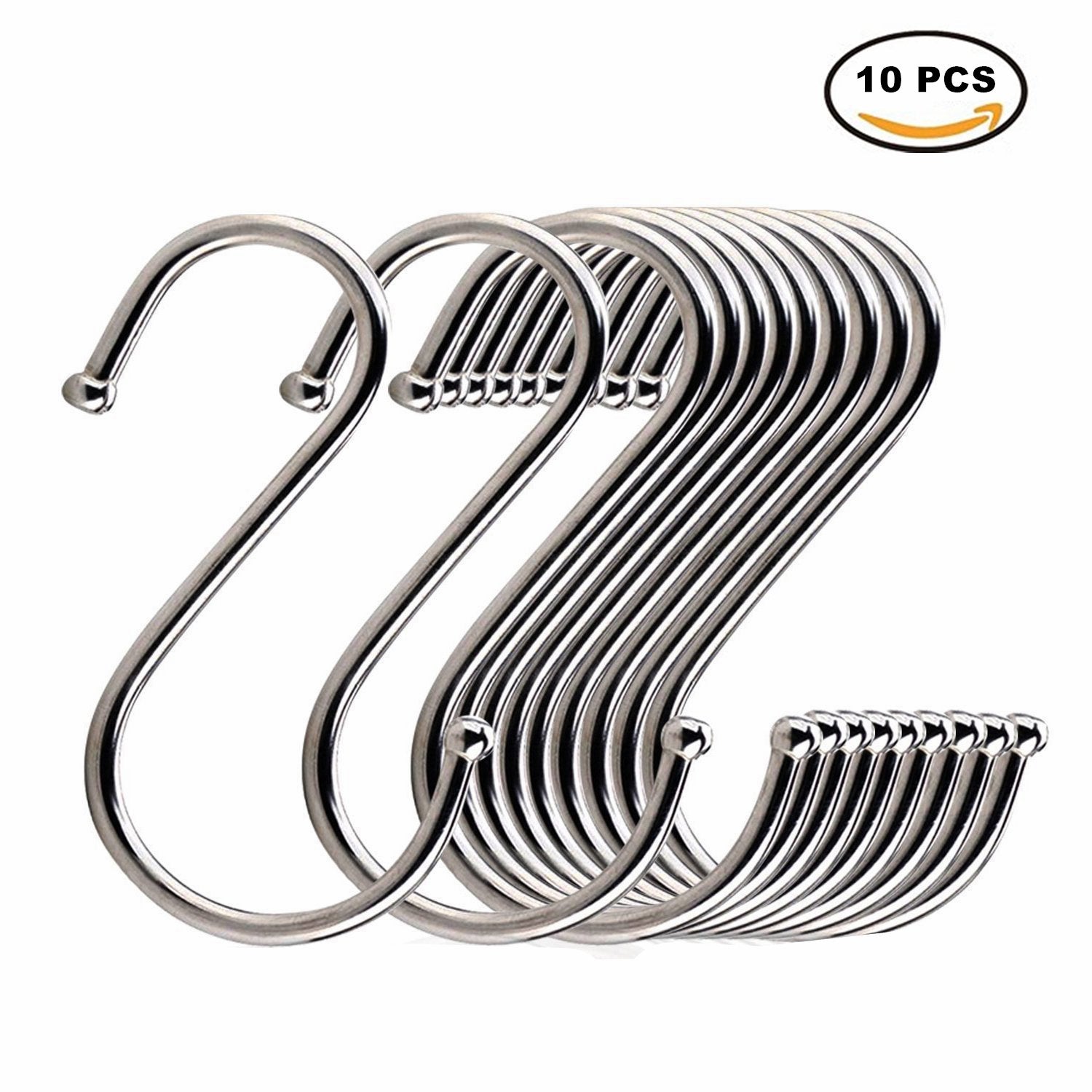 Floette 10 PCS S Shaped Hooks, Stainless Steel S Hook, Pot Rack hooks, Pot Hanger for Kitchen, Bedroom and Office (Large)