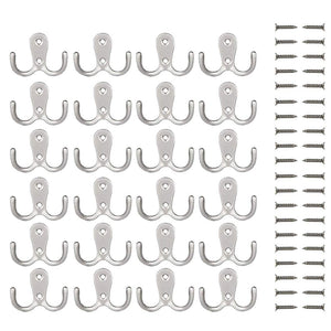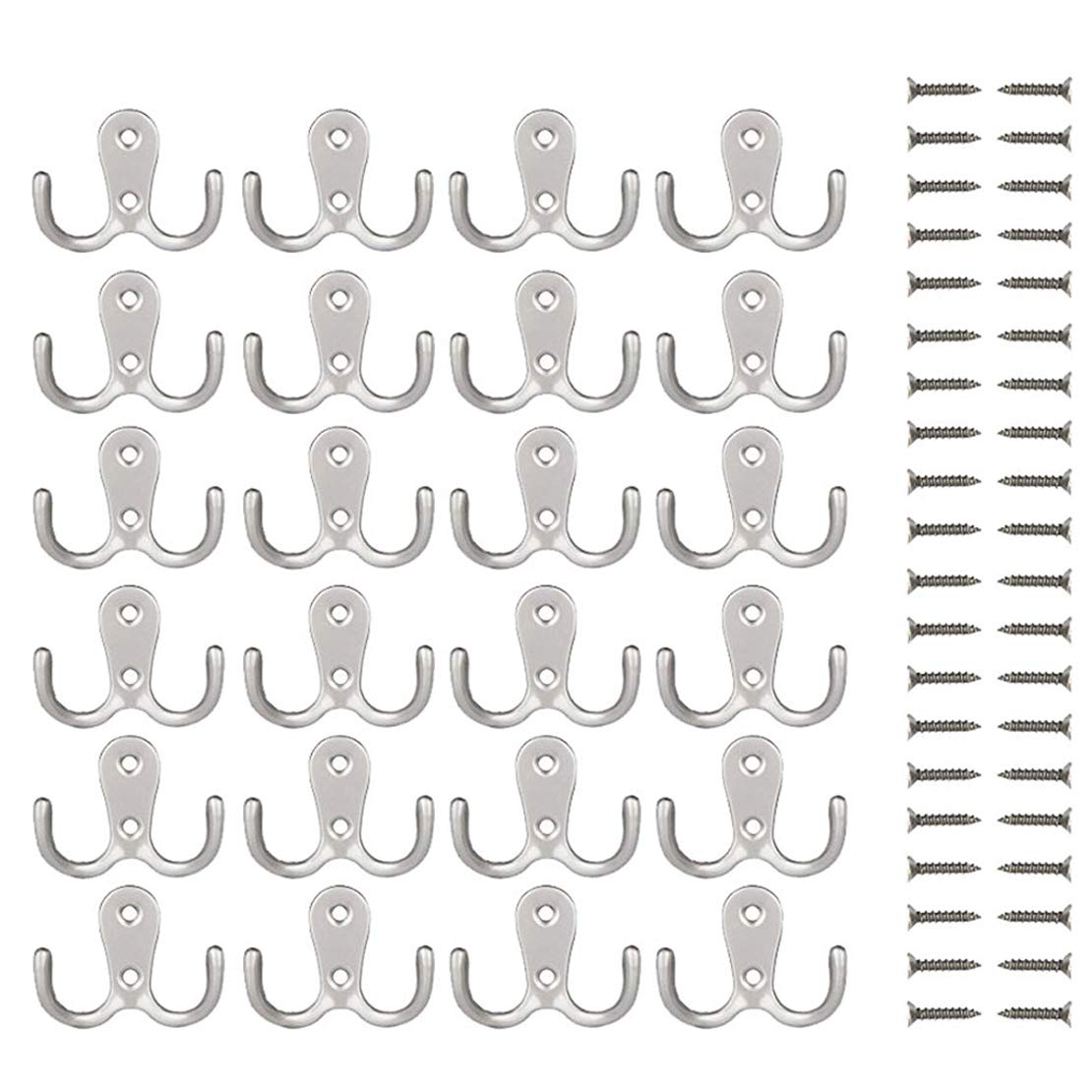 Ginbel Direct 20 Pack Wall Mounted Heavy Duty Double Hooks Hanger Holder Silver Wall Vintage Decorative Key Coat Robe Hooks Scarf, Bag, Towel, Cap (Silver)
